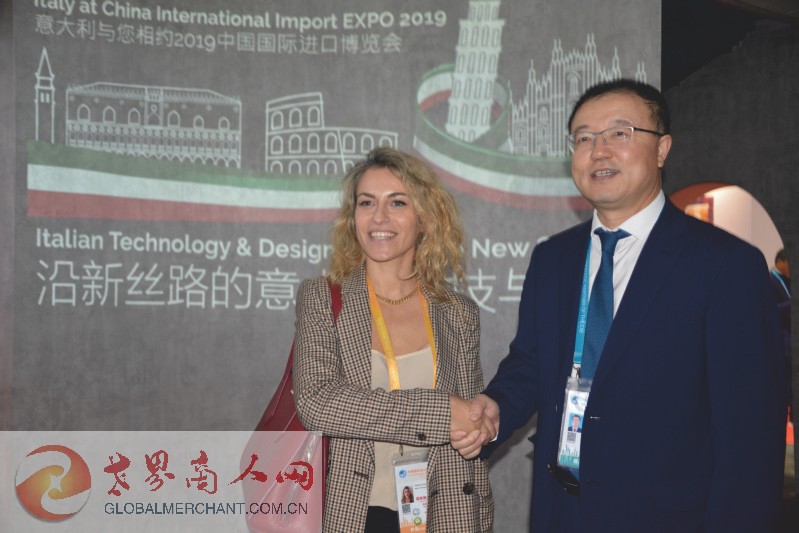 第二届中国国际进口博览会国家展展区内的意大利展位:意大利展商与黑河市市长