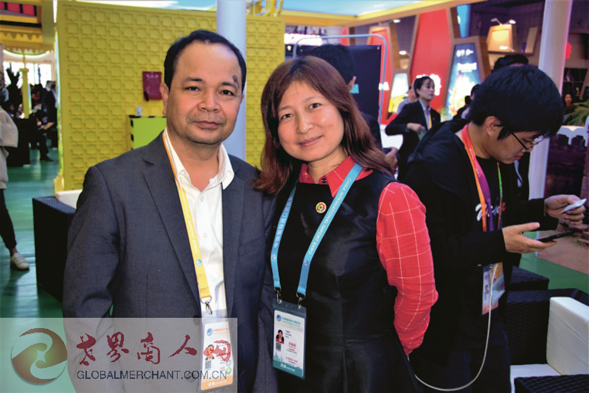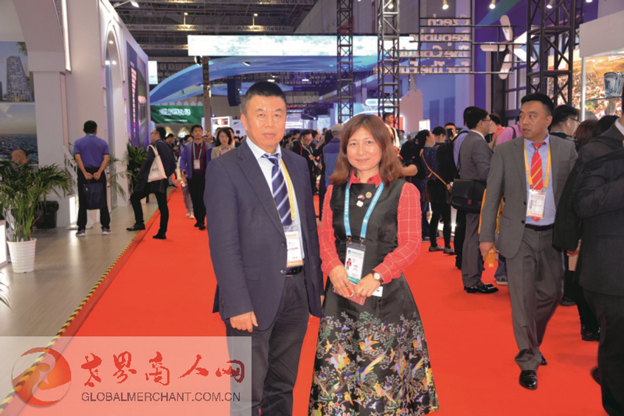 环球云链·世界商人网董事总经理王晓玲在第二届中国国际进口博览会与中国产业海外发展协会秘书长和振伟先生相遇
