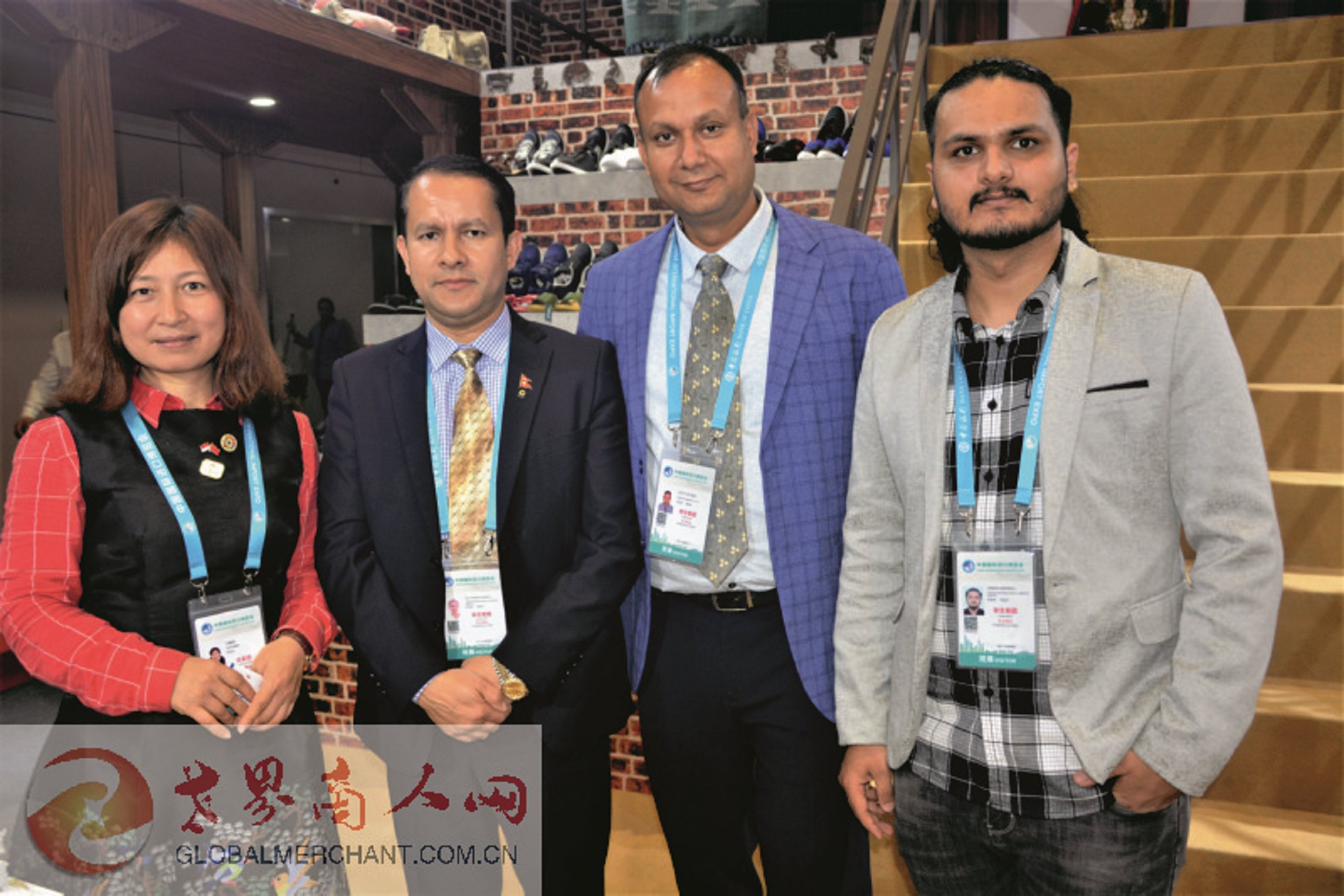 第二届中国国际进口博览会国家展展区内的柬埔寨展位:采访柬埔寨商务部工作人员愉快合影