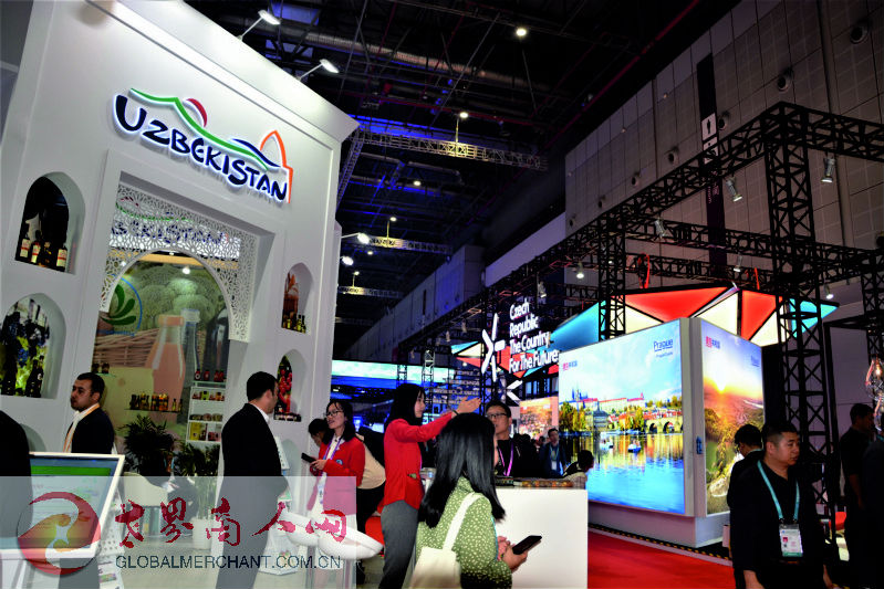 第二届中国国际进口博览会国家展展区内乌兹别克斯坦展位