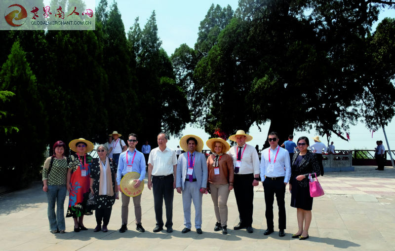运城市副市长董旭光(左5),市外事办主任杨云英主任(左2)陪同使节、专家团一行参观大禹渡黄河风景区
