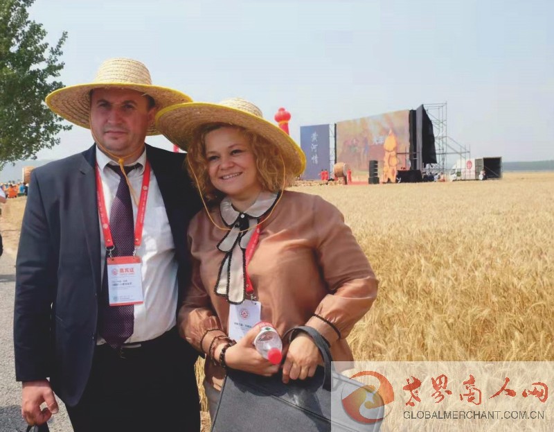 摩尔多瓦驻华大使馆一等秘书伊戈尔·方多斯先生,摩尔多瓦经济学博士塔蒂亚娜女士在运城麦田