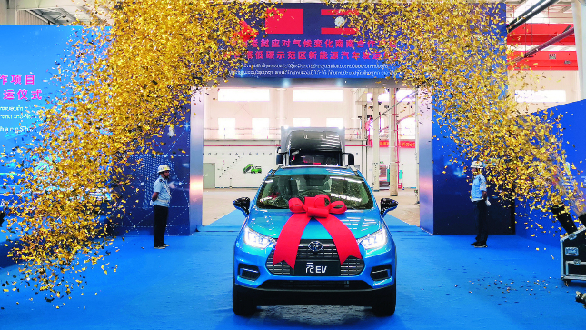 2021年7月,中国老挝应对气候变化南南合作项目-万象赛色塔低碳示范区新能源车发运仪式在湖南省长沙市举行。(图片来源:中新社资料图)