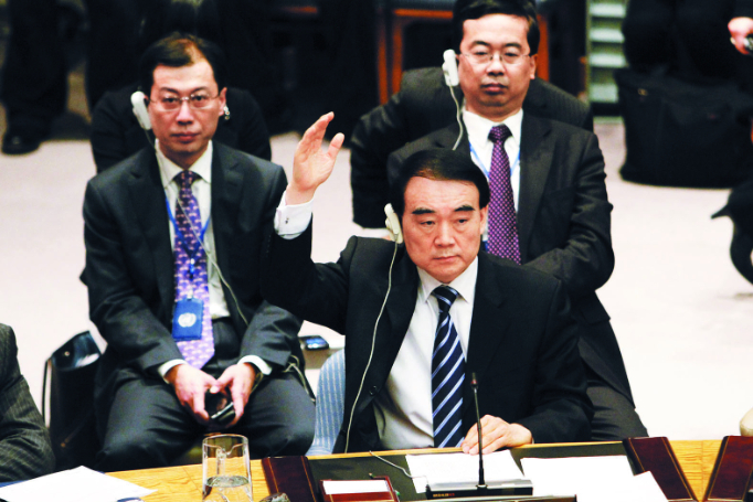 2012年2月4日,中国常驻联合国代表李保东在联合国安理会就叙利亚问题决议草案进行表决中投否决票。中国恢复在联合国合法席位50年来,一共使用16次否决权,其中10次与叙利亚问题有关。(图片来源:新华社)