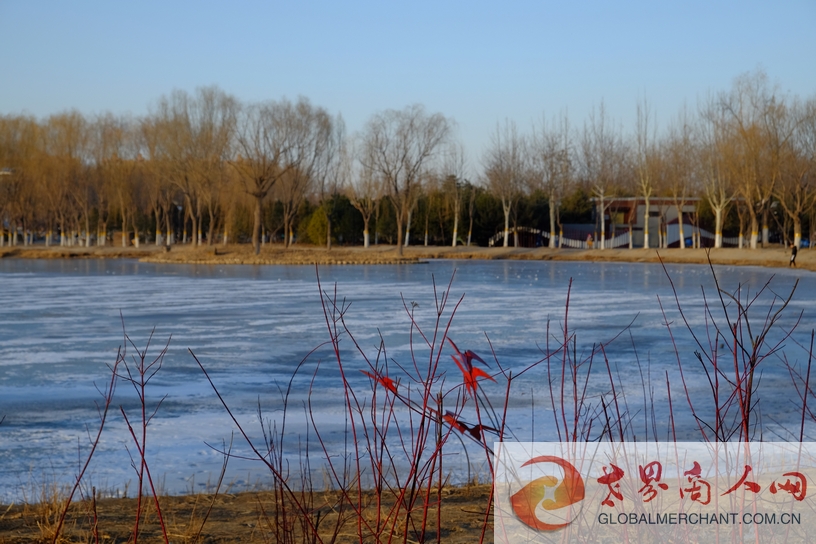 台湖湿地公园冰面。