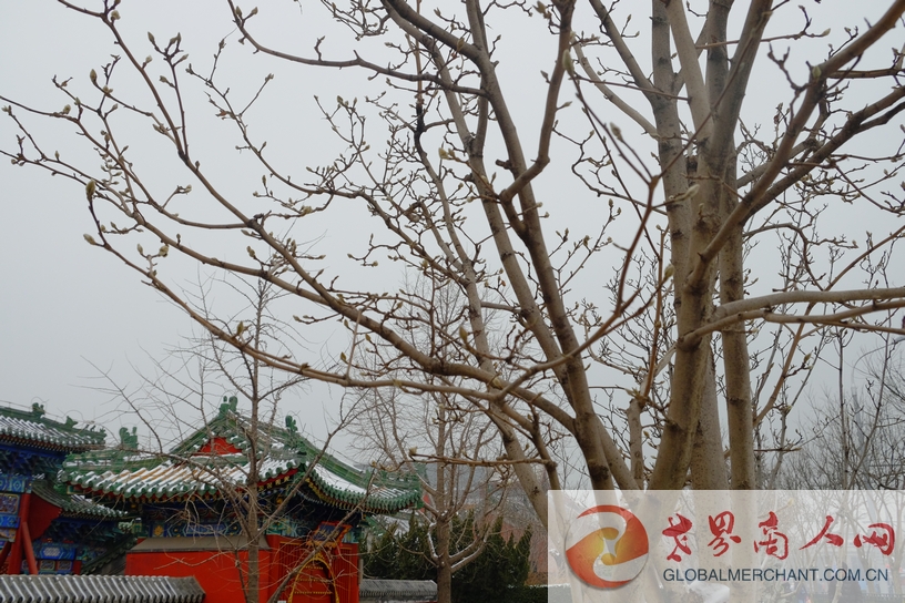 火神庙前玉兰树含苞待放