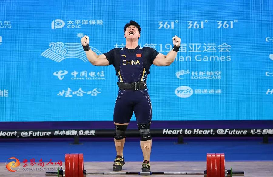 △杭州亚运会举重男子109公斤级:刘焕华夺冠。