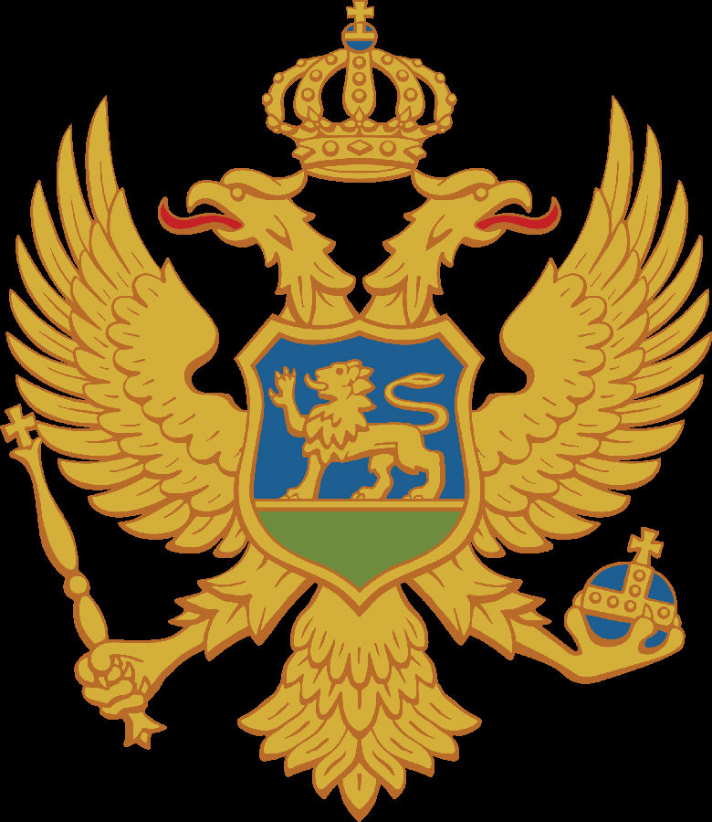 胸前的盾上绘有一只迈步的狮子,是耶稣基督复活的象征。鹰头上有王冠,两爪持王球和权杖。国徽图案始于1481年。南斯拉夫王国时期改用王国的国徽。共产党执政时期采用了苏联式的国徽,双头鹰被洛夫琴山所取代。南斯拉夫解体后,恢复了双头鹰徽。国徽于2004年7月12日启用。