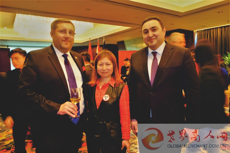 环球云链·世界商人网主编王晓玲与克罗地亚驻华大使达里欧·米海林(左),阿塞拜疆驻华大使阿克拉姆(右)愉快合影