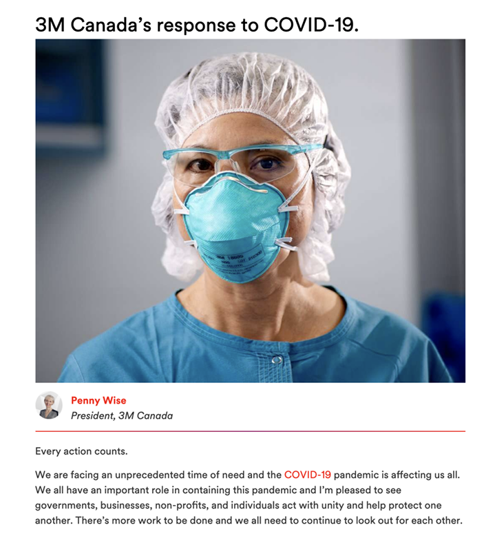 3M公司加拿大区总裁佩妮·怀斯也发表公开信说,“我们将不遗余力,竭尽所能增加加拿大N95口罩的供应,以支持我们的一线医护人员和工作人员。”