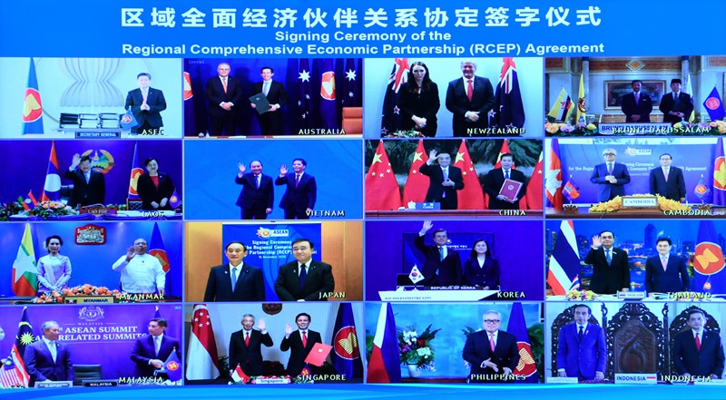 第四次区域全面经济伙伴关系协定领导人会议11月15日举行,东盟10国以及中国、日本、韩国、澳大利亚、新西兰共15个国家,正式签署区域全面经济伙伴关系协定(RCEP),标志着全球规模最大的自由贸易协定正式达成。