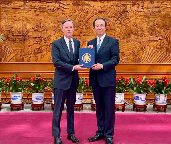 外交部礼宾司司长洪磊接受美国新任驻华大使伯恩斯递交国书副本