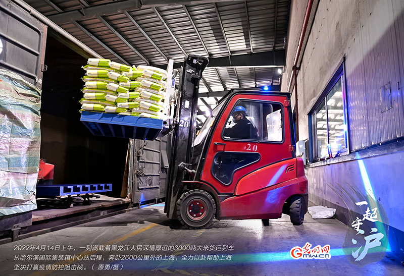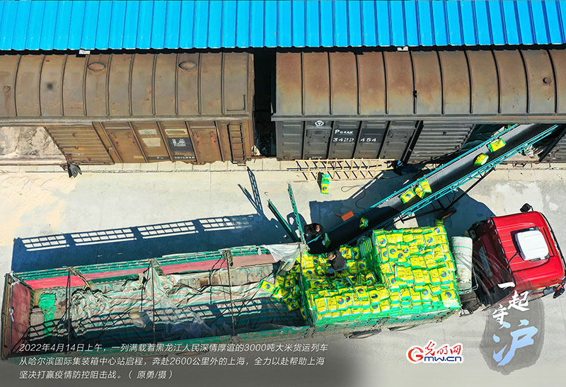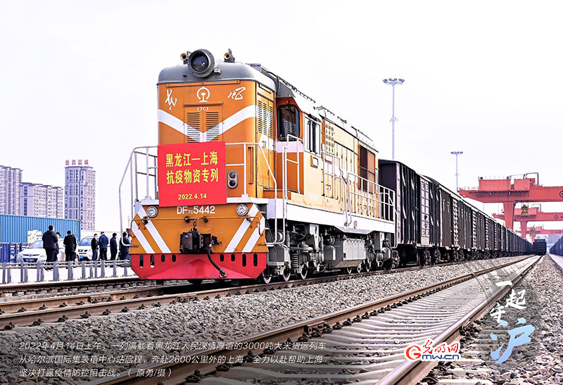 2022年4月14日上午,一列满载着黑龙江人民深情厚谊的3000吨大米货运列车从哈尔滨国际集装箱中心站启程,奔赴2600公里外的上海,全力以赴帮助上海坚决打赢疫情防控阻击战。