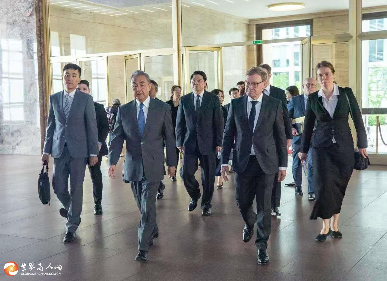 王毅说,今年是中欧建交50周年,中德全方位战略伙伴关系也开启了新的10年。中欧、中德关系步入承上启下的关键节点。中德关系发展得好,不仅将带动中欧关系整体向好,对世界的稳定发展也具有重要意义。作为全球第二和第三大经济体,中德肩负重要国际责任,承载各方期待,应携手并进,对彼此互信再确认,对两国合作再巩固,对双边关系再深化。面对当前变乱交织的国际局势特别是保护主义、逆全球化、单边霸凌大行其道,中德更需要加强战略沟通协作,以中德关系的稳定性为世界注入更多确定性,共同倡导并践行多边主义,维护以联合国为核心的国际体系、以国际法为基础的国际秩序、以联合国宪章为基础的国际关系基本准则,致力于发展更加可靠、稳定、可预期的全方位战略伙伴关系。