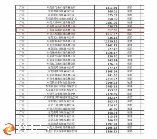 上图为国家林业和草原局、自然资源部公示拟不再保留自然保护地名单